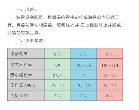 油管旋塞閥95/115-35-70MPa